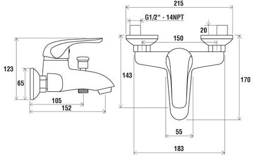 *Настенный смеситель для ванной/душа без гарнитуры 150 мм RS 022.00/150 (арт. X070011)