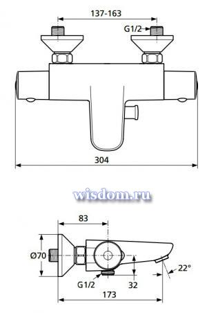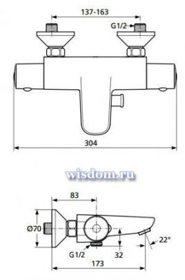 - Арт. A5550AA - Настенный термостатический смеситель Ideal Standard CeraTherm для ванны/душа