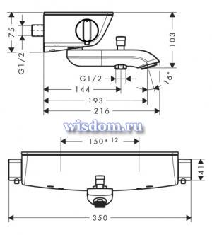 *Смеситель-термостат для ванны/душа Цвет покрытия: арт. 13141000 - покрытие хром арт. 13141400 - белое покрытие