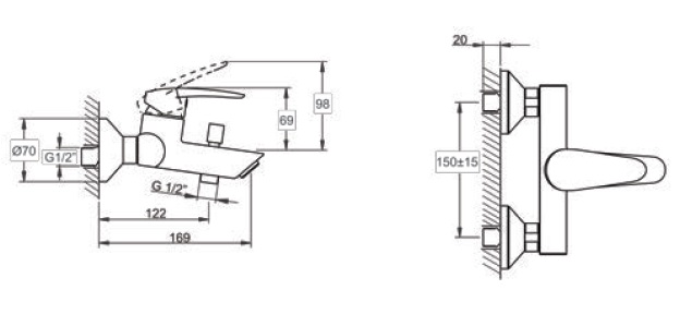 Смеситель для ванны/душа Vitra Dynamic S A40953EXP