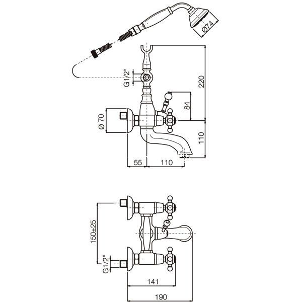 *Смеситель двухвентельный для ванны и душа Carlo Frattini, серия Elizabeth