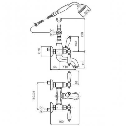 *Смеситель для ванны и душа Carlo Frattini, серия Herend