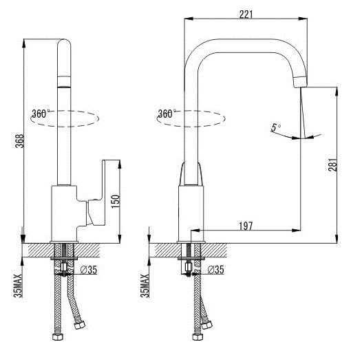 *Одноручковый смеситель с керамическим картриджем 35 мм Sedal (Испания)