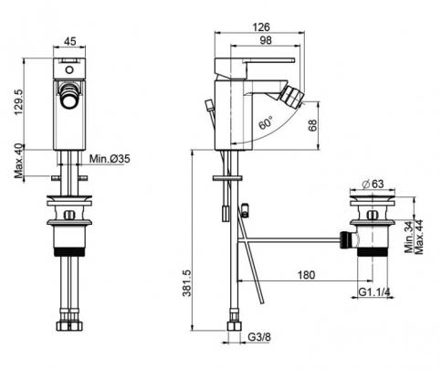 *с донным клапаном, слив 1"1/4