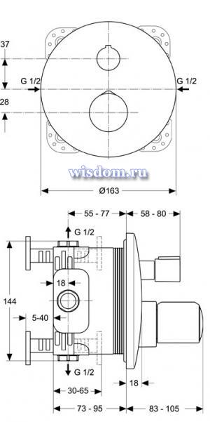 * Комплект для настенного монтажа встраиваемого * Картридж 47 mm с функцией Click * Автоматическое переключение * Металлическая накладка * Металлическая рукоятка с индикаторами горячей/холодной воды * Без душевого набора