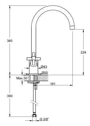 - арт. A42045EXP - Смеситель для кухни *Длина излива 191 мм *Высота излива 224 мм *Поворотный корпус *Каскадный аэратор с дросселем обеспечивает скорость потока мин. 7,5 л/мин., макс. 9 л/мин.