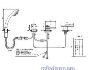* Смеситель для ванны на 4- отверстия *DT274.5P (хром)- Переключатель керамический MD0448.5, душевой шланг с пружиной 2м
