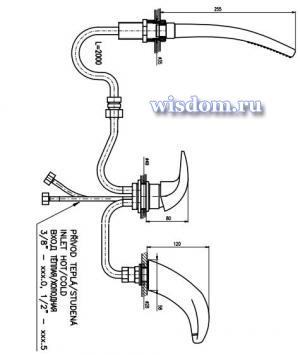 * Смеситель для ванны на 3- отверстия *D471.5Y (хром) Переключатель в миксе D468.5Y, душевой шланг с пружиной 2м