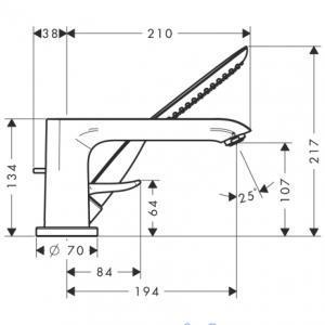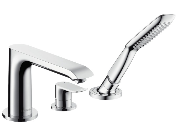 наружная часть, в набор входят: рукоятка керамического узла смешивания, розетка, излив, ручной душ (# 28558000), защита от обратного тока воды
