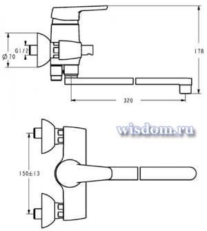 - Арт. B9569AA - Настенный смеситель Ideal Standard Cerasprint 2012 для ванны и душа