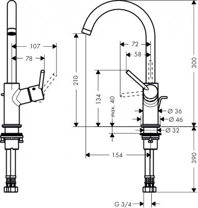 *высота до излива 210 мм