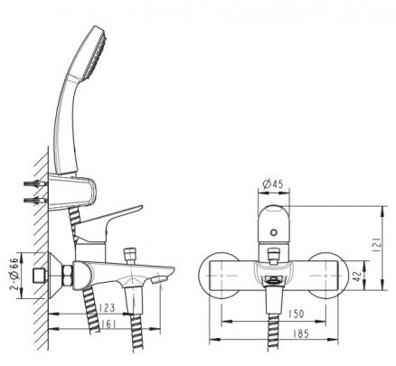 Смеситель для ванны Bravat Drop F64898C-B/D244C (арт. DR 0254)