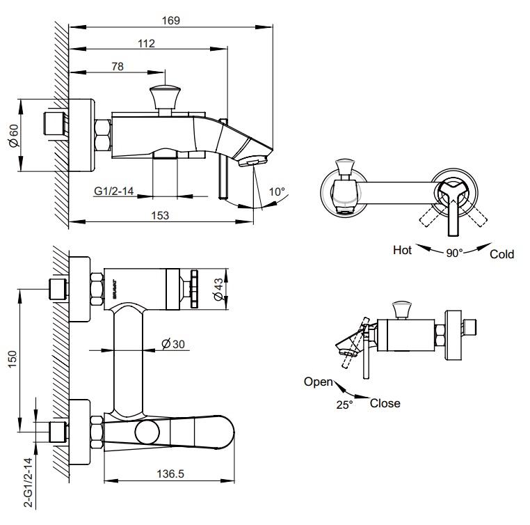 Смеситель для ванны Bravat Waterfall F673107C-01 (арт. WF 0554)