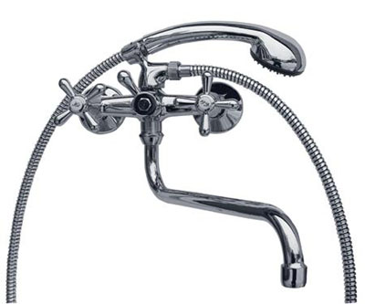 * Смеситель классический комбинированный, для ванны и умывальника, с душем, круглый носик