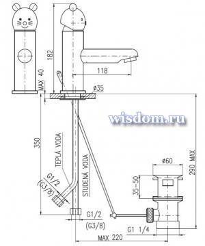 Смеситель детский для умывальника с донным клапаном
