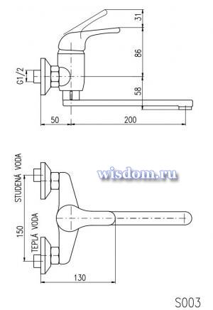 * Cмеситель для раковины настенный с плоским краном 200 мм