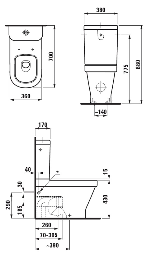 Унитаз Laufen LB3 8.2468.4.000.000.1 с бачком LB3 8.2868.0.000.278.1