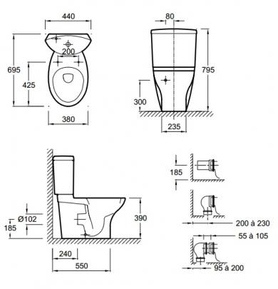 Унитаз напольный Presquile 19077-00 в комплекте с бачком Е1425-00: * Унитаз устанавливается вплотную к стене и имеет скрытые боковые крепления для идеальной уборки * Бачок оснащен механизмом экономии воды 3/6 литров и сливом на 6 литров * Плавно опускающаяся, съемная, мягкая крышка с металлическими шарнирами для идеальной гигиены и легкости мытья