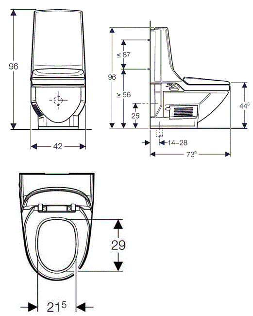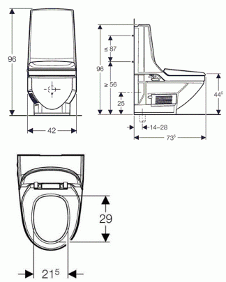 *Макс. нагрузка на сиденье/крышку унитаза: 150 кг *Объемный расход воздуха фена для сушки: 12 м3/ч *Расход воды для омывания анальной зоны тела: 2,1-5,5 л/мин *Расход воды для дамского душа: 1,4-3 л/мин *Время омывания, заводская установка: 20 сек *Число ступеней напора омывающей струи: 7 *Объем бойлера: 2,0 л *Длина кабеля питания: 70 см *Частота тока: 50-60 Гц *Потребляемая мощность: 1000 Вт *Потребляемая мощность в режиме ожидания/при включенной функции нагрева: 1/9 Вт *Класс защиты: I *Степень защиты: IP x4 *Номинальное напряжение: 230 В перем. т. *Объемный расход воздуха очистителя воздуха: 10 м3/ч *Диапазон гидравлического давления: 1-10 бар *Температура воздуха фена для сушки, заводская установка: 45°C *Температура воздуха, диапазон настройки: 20-45°C *Рабочая температура: 10-40°C *Температура хранения: -10 - +60°C *Температура воды, заводская установка: 37°C *Температура воды, диапазон настройки: 10-39°C *Объем воды для смыва, заводская установка: 6 и 3 л