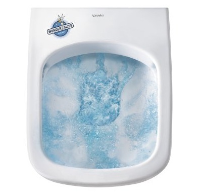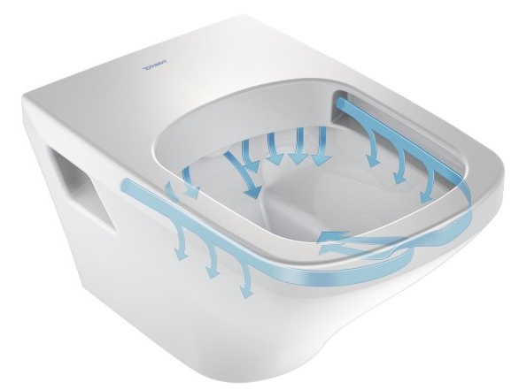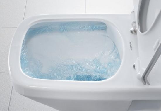 Везде, где требуется оптимальное подержание гигиены и ограничено время уборки, унитазы серии Duravit Durastyle без смывного обода предлагают продуктивное решение: динамичное поступление воды обеспечивает прекрасные результаты смыва. Вода поступает в чашу унитаза симметрично и под напором, так что вся внутренняя поверхность во время смыва полностью омывается водой. Унитаз DuraStyle без смывного обода гарантирует прекрасные результаты смыва даже при небольших количествах воды. За счет открытой и доступной для ухода смывной кромки можно гораздо проще поддерживать чистоту чаши.