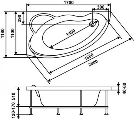 Акриловая ванна Eurolux Вавилон (правая/левая) 170х120