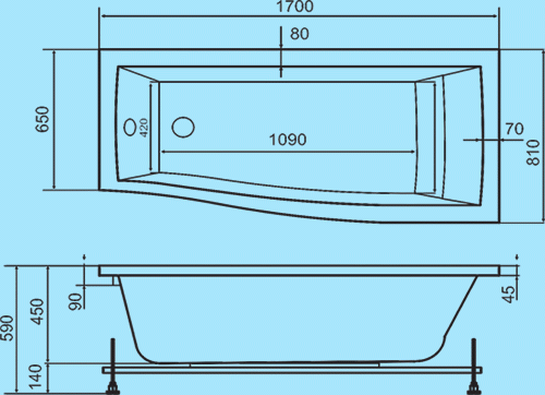 *Акриловая ванна на раме *Слив-перелив полуавтомат *Фронтальная панель