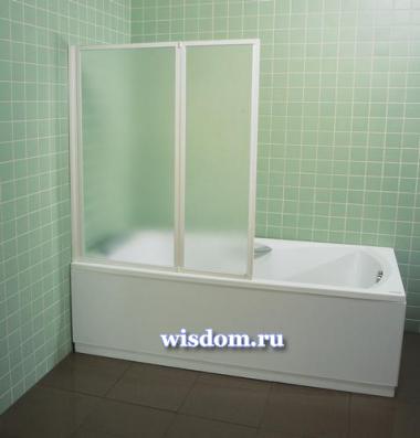 Раздвижная шторка для ванн Ravak VS2 состоит из двух элементов, которые можно сложить и убрать к стене,