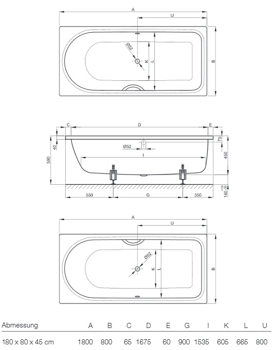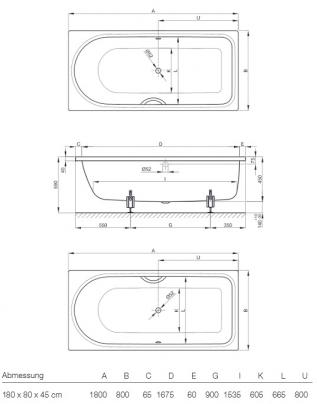 *Габариты (ДхШхГ): 180x80x45 см *Длина места для лежания: 1435 мм *Слив по центру 52 мм *Перелив слева *Объем: 235 л *AR - антискользящее покрытие *Plus - антигрязевое покрытие *1 GR-отверстие под ручку с одной стороны *Звукоизоляция в комплекте *Цвет: белый