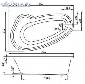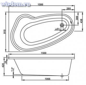 Акриловая ванна Vagnerplast Avona 150 см левая/правая (арт. VPBA159AVO3LX-01/VPBA159AVO3PX-01)