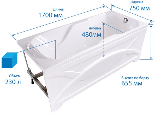 - Фронтальный экран для ванны Triton Диана 170 - 2350 руб.