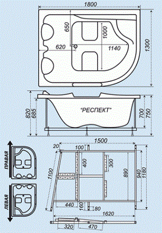 - Фронтальный экран для ванны Triton Респект 180 (L/R) - 6790 руб.