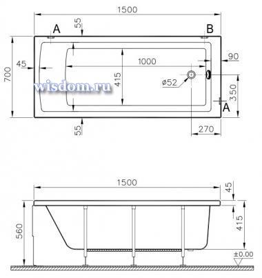 Акриловая ванна Vitra Neon 150x70 (арт. 52510001000)