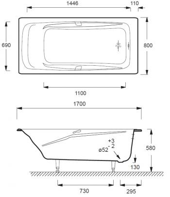 Чугунная ванна Jacob Delafon E2915-00 Repos (Франция)