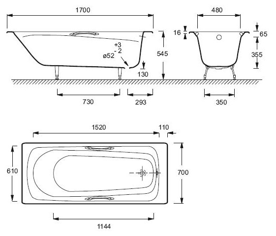 арт. E2925-00 — чугунная ванна с отверстиями для ручек