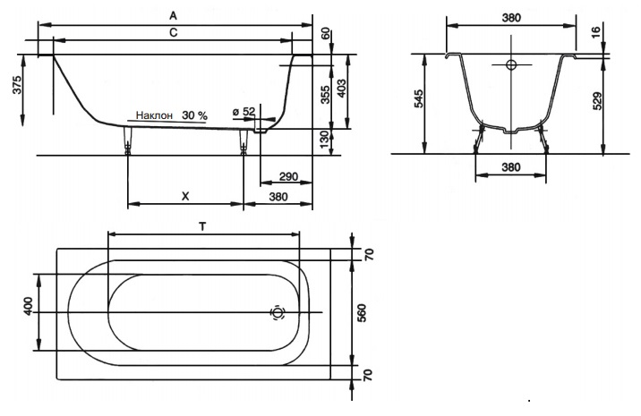 арт. E2931-00 — Чугунная ванна без отверстий для ручек