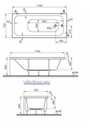 Акриловая ванна Vitra Balance Rectangular 170х75 (арт. 55190001000)