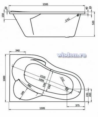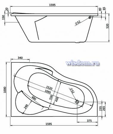 160 × 100 × 52 см.