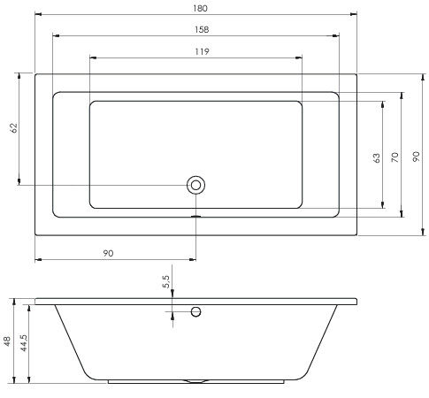 Прямоугольная акриловая ванна Riho Lusso 180х90