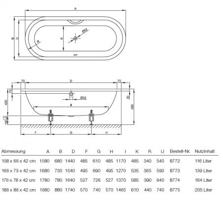 арт. 8774 - Овальная стальная ванна BetteStarlet Flair Oval