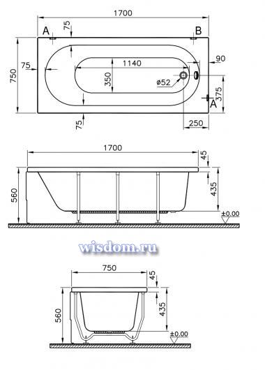 Прямоугольная акриловая ванна Vitra Matrix 170x75 (арт. 50710001000)