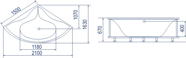 Угловая акриловая ванна Bach Деметра