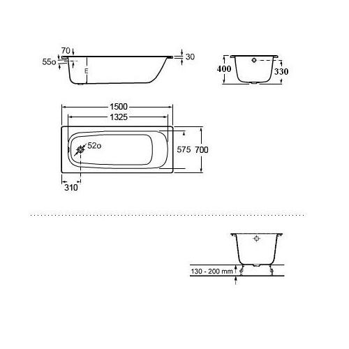 * Без противоскользящего покрытия и слива-перелива (приобретается отдельно)