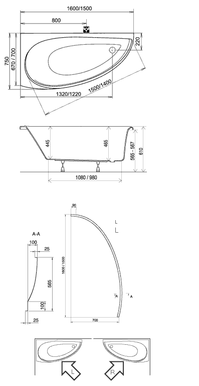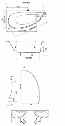 Ассиметричная ванна Ravak Avocado 160 L/R