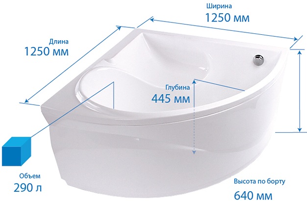 * Водоизмещение: 290 л