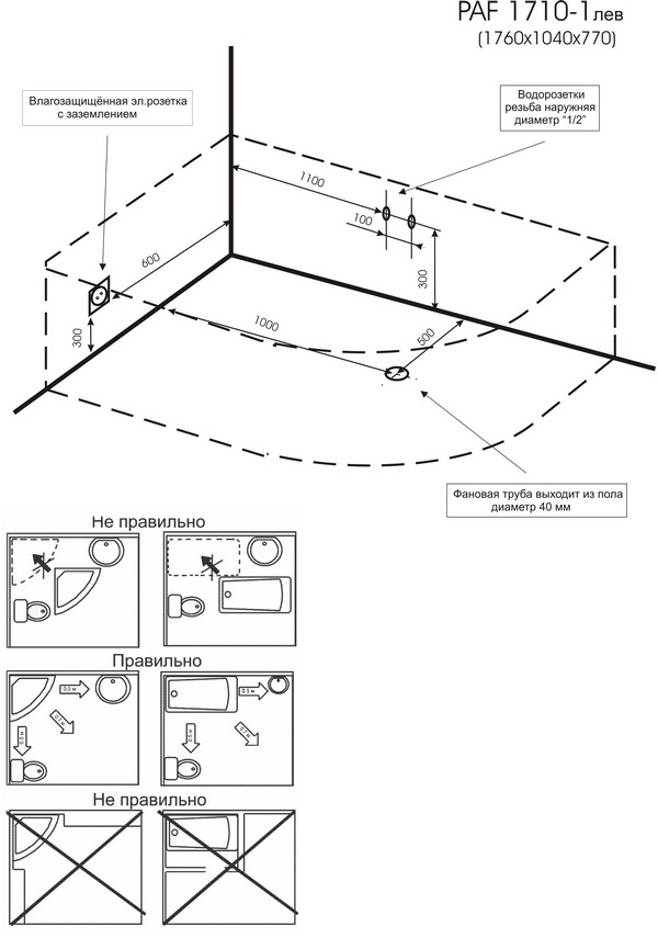 Угловая одноместная гидромассажная ванна PAF 1710 I :