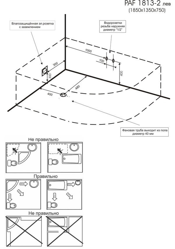 Угловая ванна с гидромассажем Potter PAF 1813 II (2) R/L